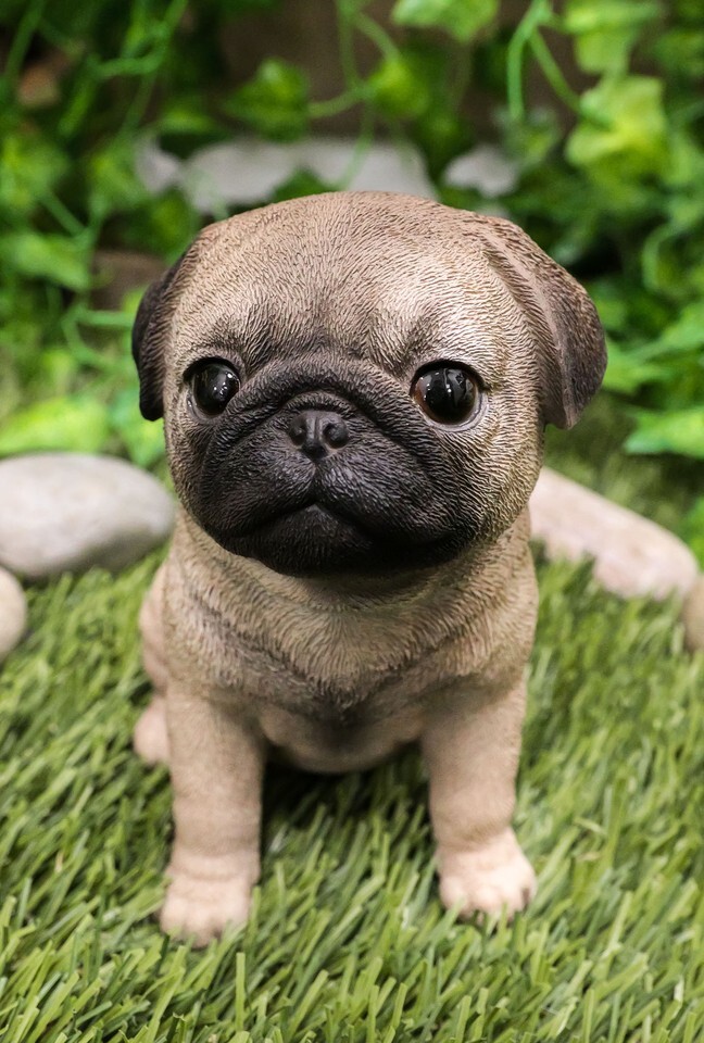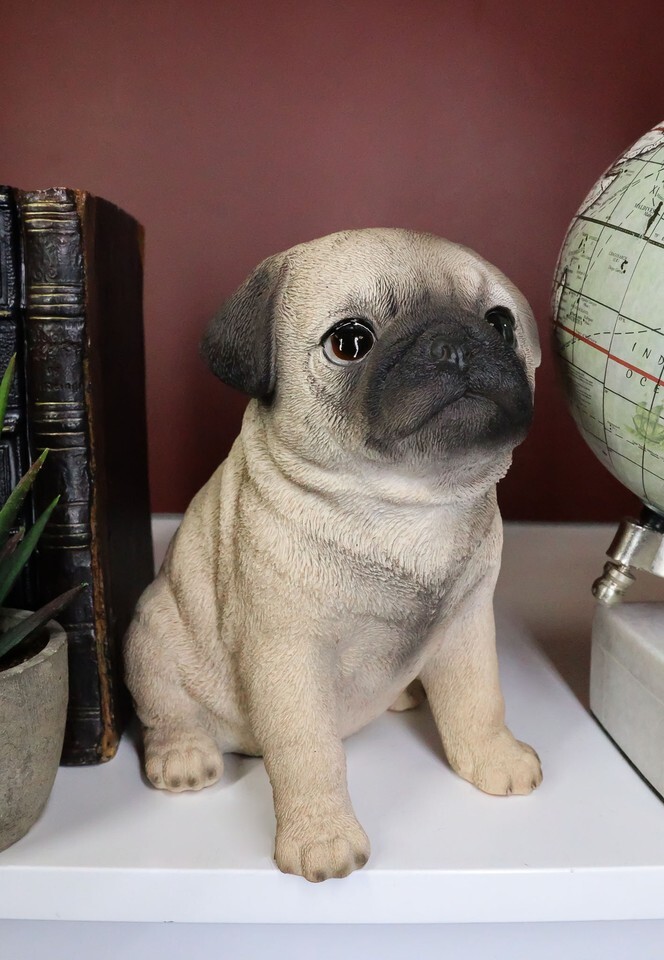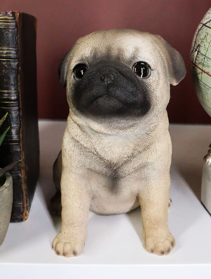 - Ebros Lifelike Sitting Pug Dog Statue 6" Tall Pet Pal Figurine with Glass Eyes