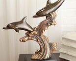 - Ebros Nautical 2 Dolphins Surfing Ocean Waves Electroplated Bronze Resin Statue