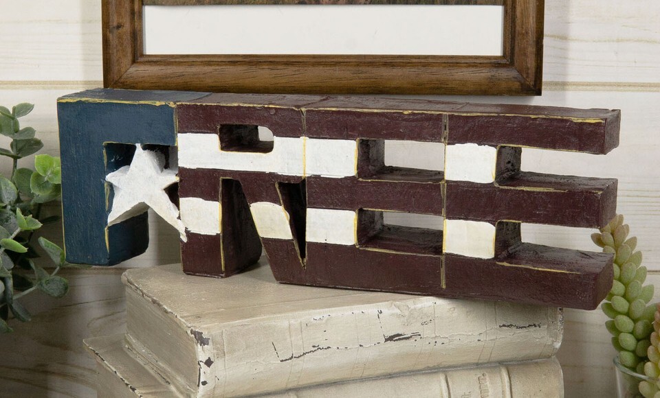 - Ebros Pack of 3 USA Patriot Flag 'Free Hope Love' Word Art Desktop Sign Plaques