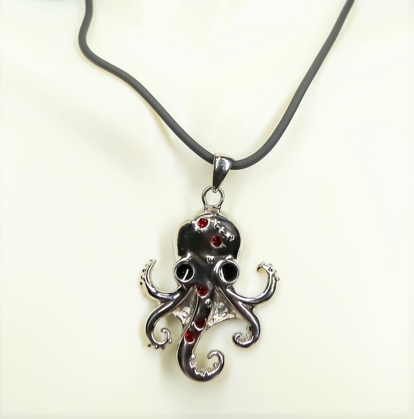 - Ebros Red Rhinestone Steampunk Kraken Stainless Steel Necklace Pendant Jewelry