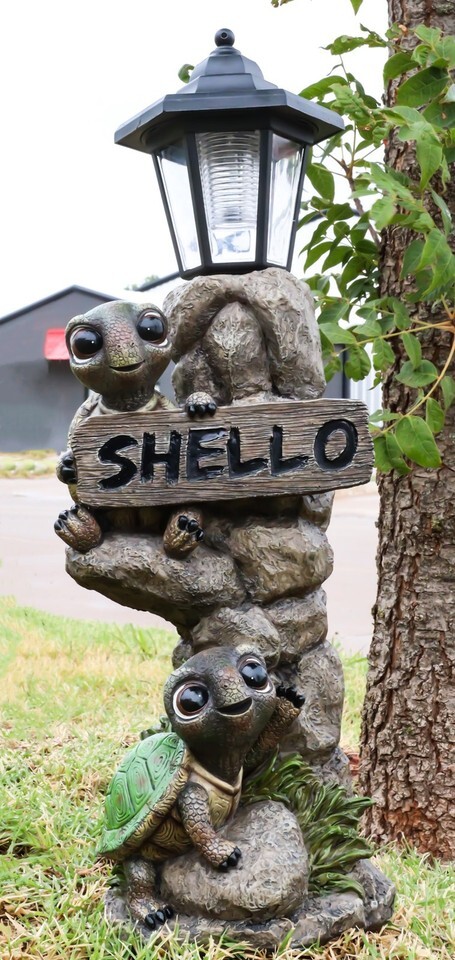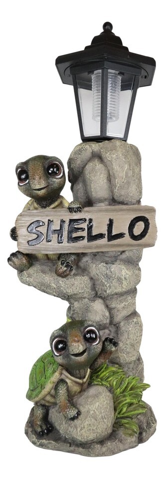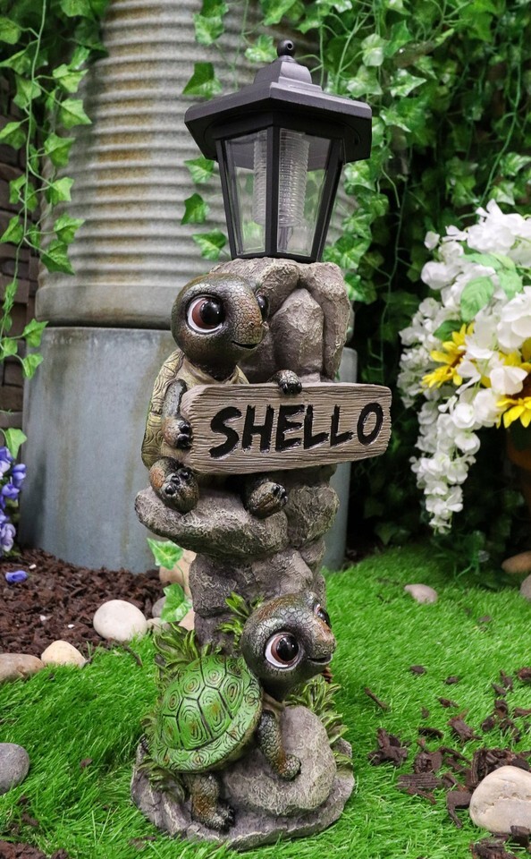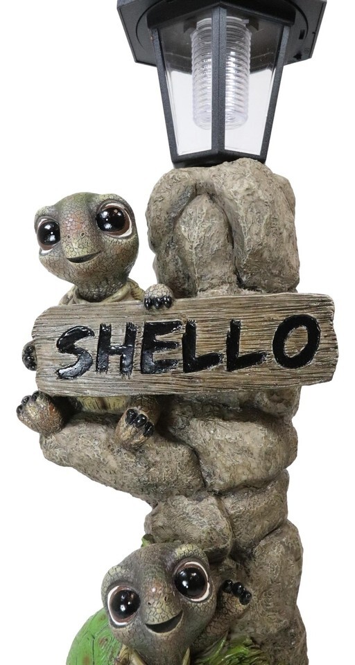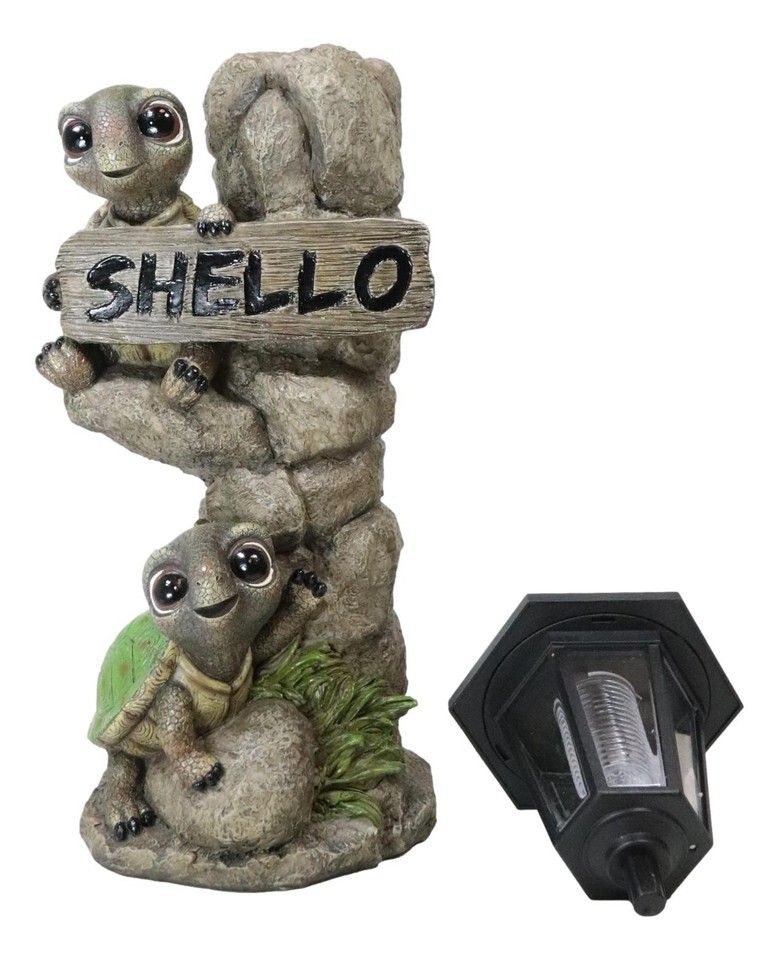 - Ebros Rock Climbing Baby Tortoise Turtles With Greeting Sign & Solar LED Statue