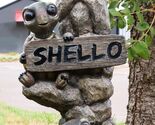 ? Greet your guests with a SHELLO by displaying this sculpture by your home's entry, back patio or what have you! If you UV coat the sculpture, you can display him by your pool and other outdoor areas. 2 friendly baby turtles are climbing a rocky pillar outpost. The one on the top is holding a sign that reads SHELLO as in 'Hello from a buddy with a Shell'. They will bring smiles to your family and friends!