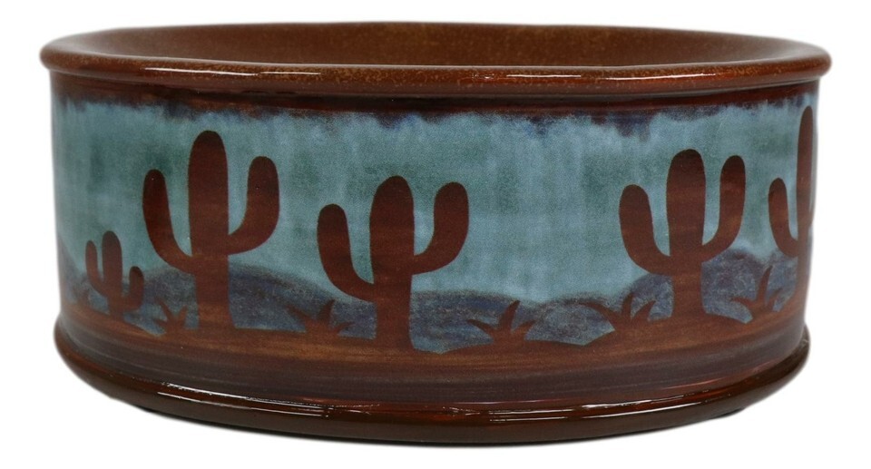 ? With the theme of Arizona's Beautiful Desert Wilderness, this bathroom sculpture features cactus cacti amidst desert sparse vegetation. Rustic nature's colors of turquoise blue, clay red, brown and more fills the surface of the accent piece. Perfect to transform the look of any bathroom or powder room of your Southwestern home!