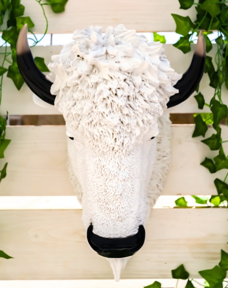 ? Looking for an exotic wall decor to grace your room? Look no further with this high quality Buffalo Head Wall Plaque!!! A white buffalo or white bison is an American bison possessing white fur, and is considered sacred or spiritually significant in several Native American religions. White buffalo are extremely rare; the National Bison Association has estimated that they only occur in approximately one out of every 10 million births.