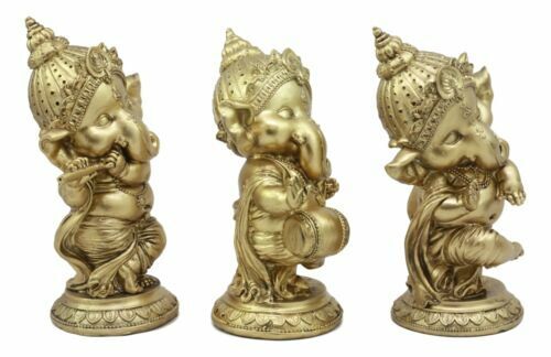 - Ebros Set of Three Elephant God Ritual Dancing Music Ganesha Hindu Figurine 6" H