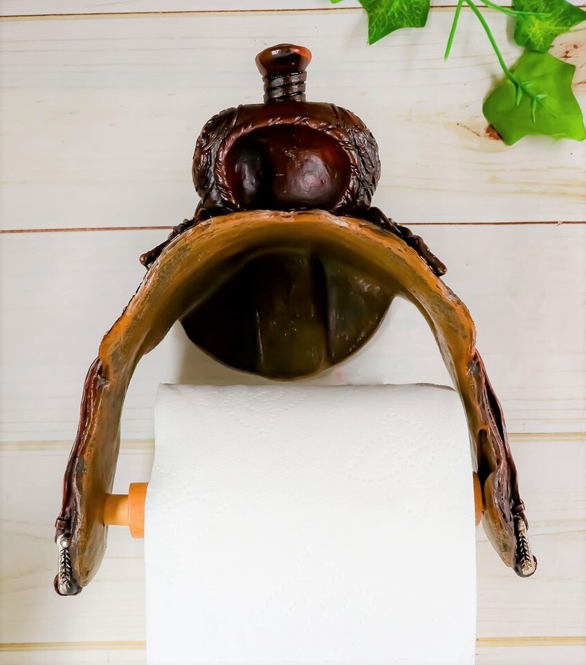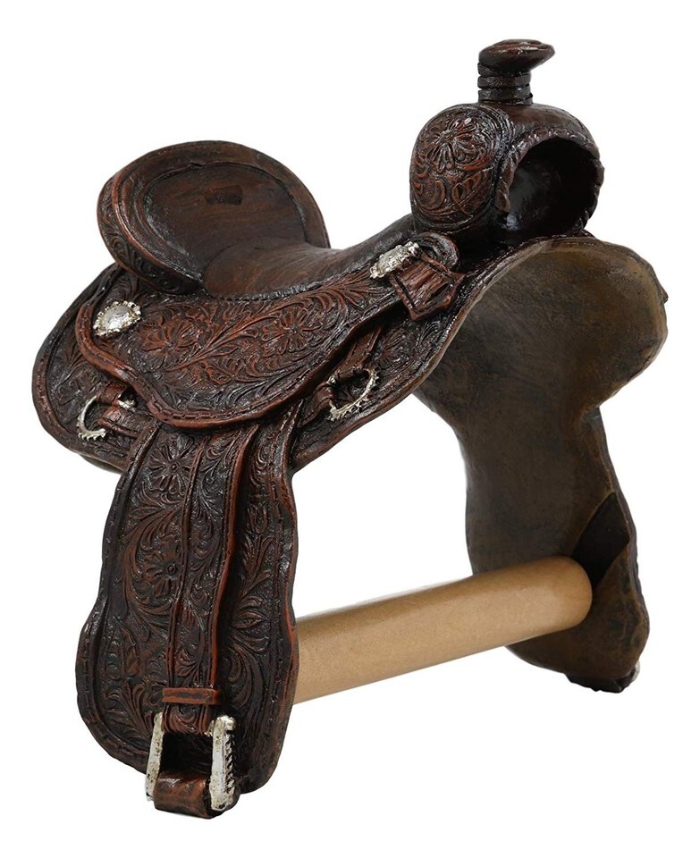 - Ebros Western Tooled Pattern Horse Saddle Decorative Toilet Paper Holder 7.5"H
