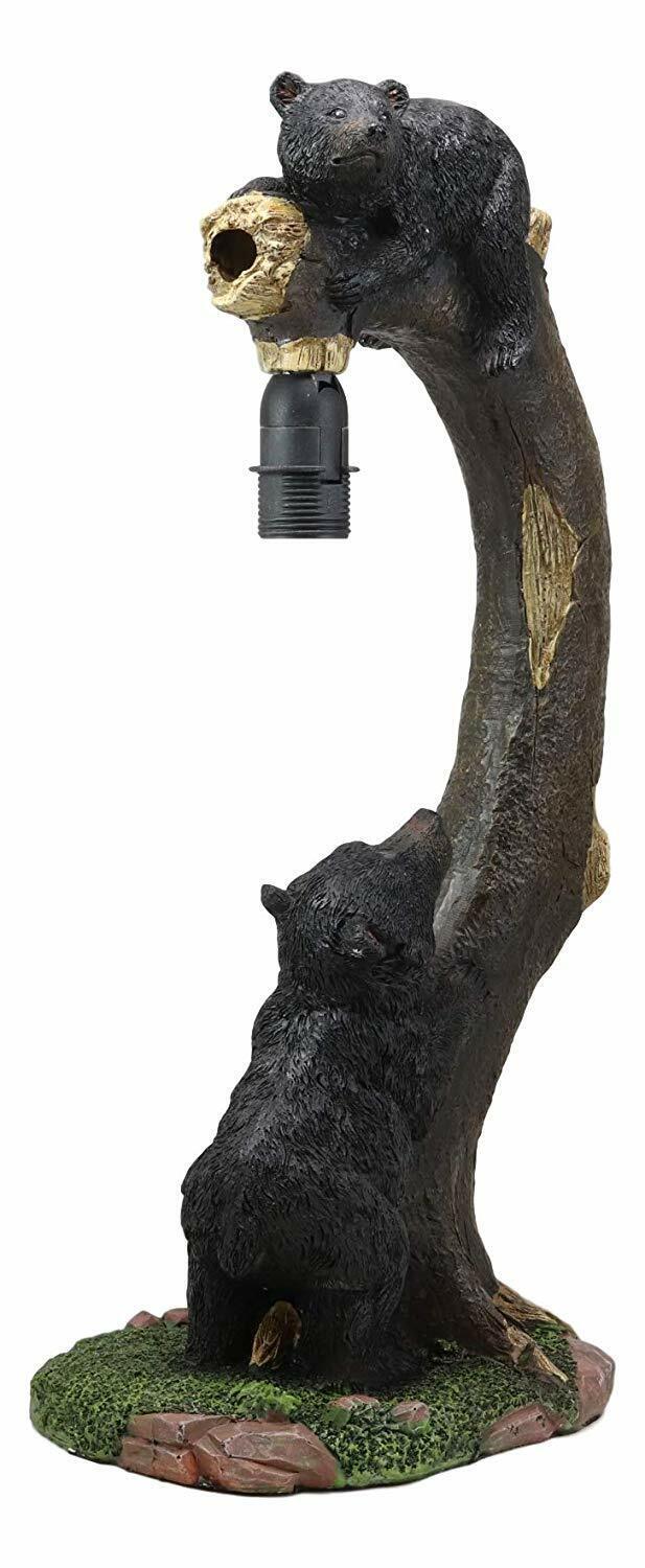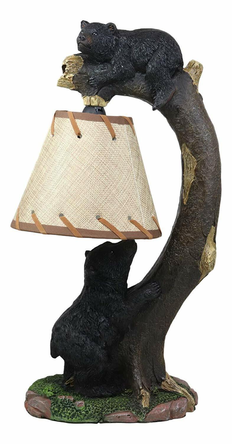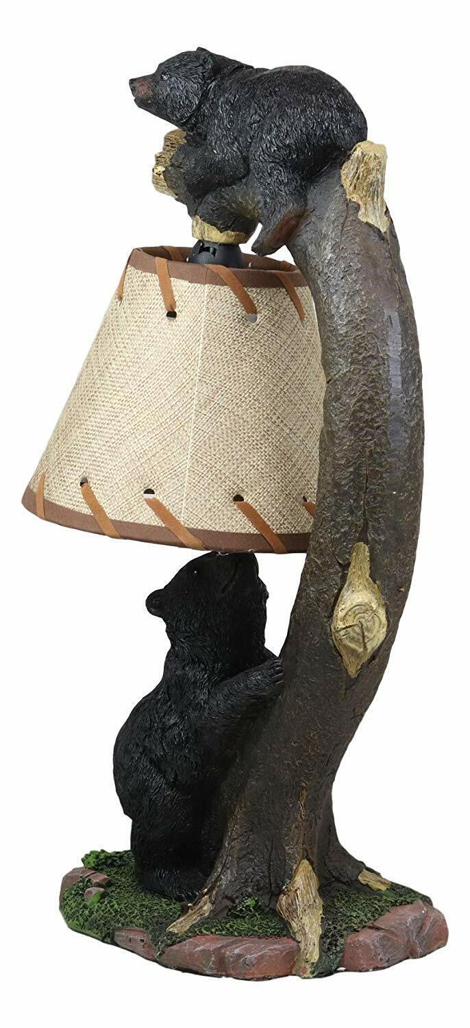 - Ebros Whimsical 2 Climbing Black Bears On Bending Tree Branch Table Lamp Decor