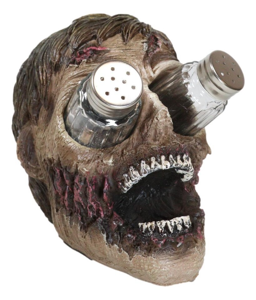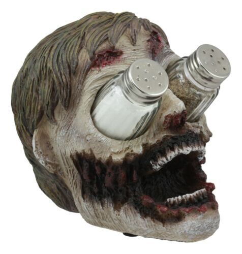- Ebros Zombie Salt and Pepper Shakers Holder Set with Glass Shakers 5.5" H