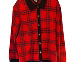 Eccobay Women's Cardigan Sweater Red Black Plaid Long Sleeve Button XL