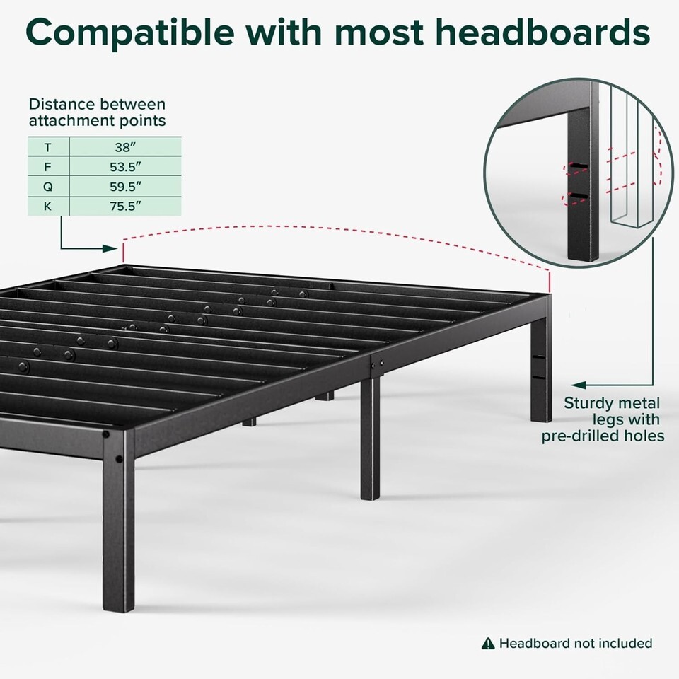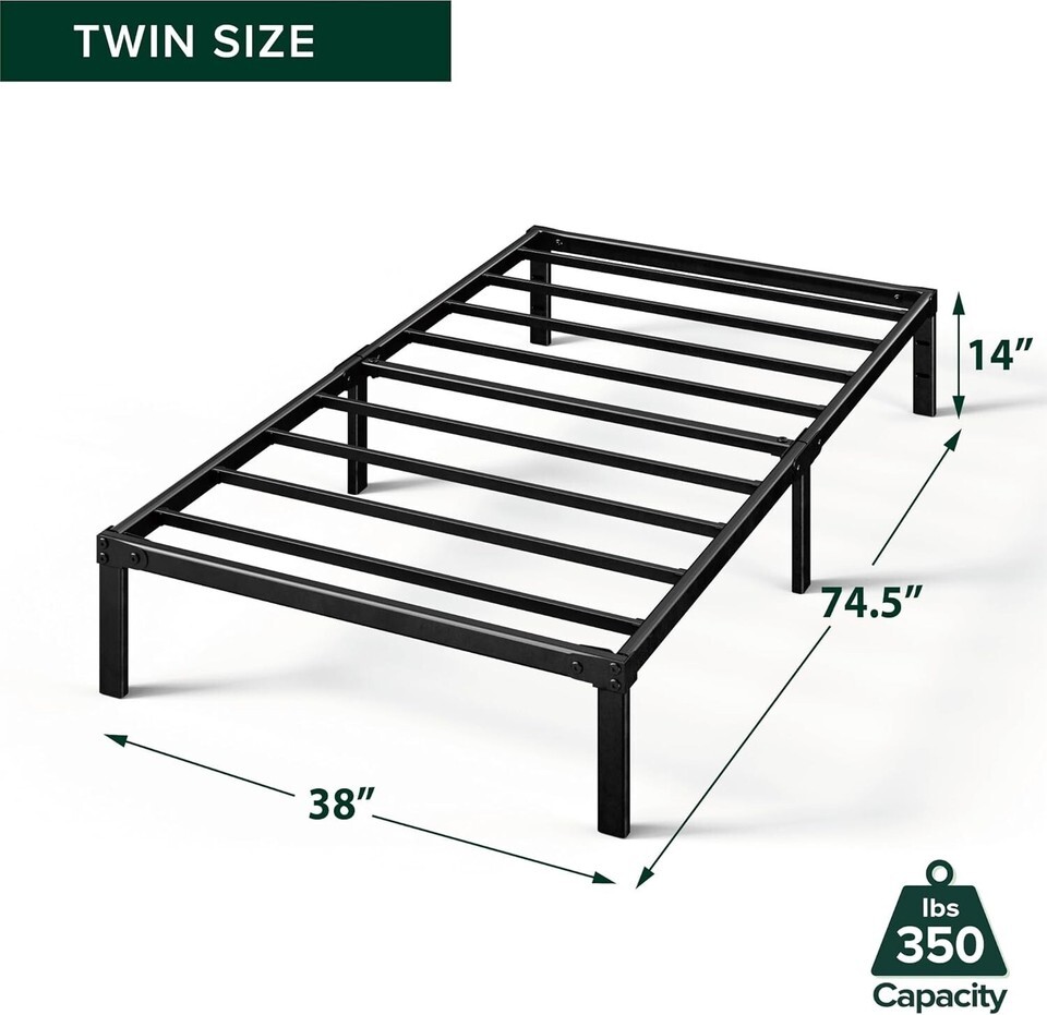 No box spring needed - Durable metal slats extend the life of your mattress, supporting up to 350 lbs for twin size and 700 lbs for all other sizes.