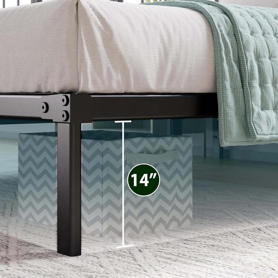 - Eco-Friendly 14-Inch Black Twin Metal Bed Frame With Underbed Storage Space