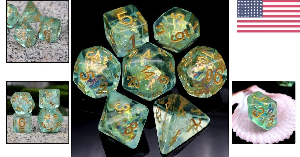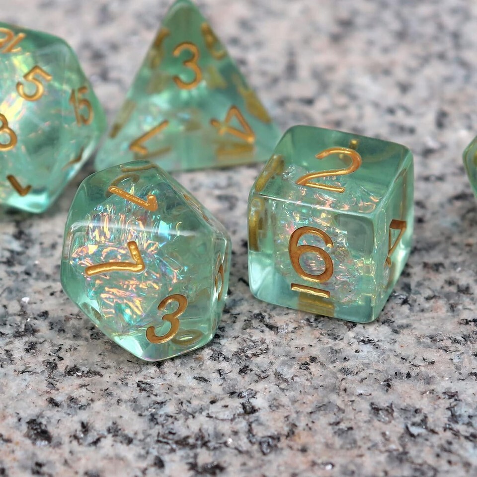 - Eco-Friendly 7PCS Light Green DND Dice Set - Sparkling Handmade RPG Accessory