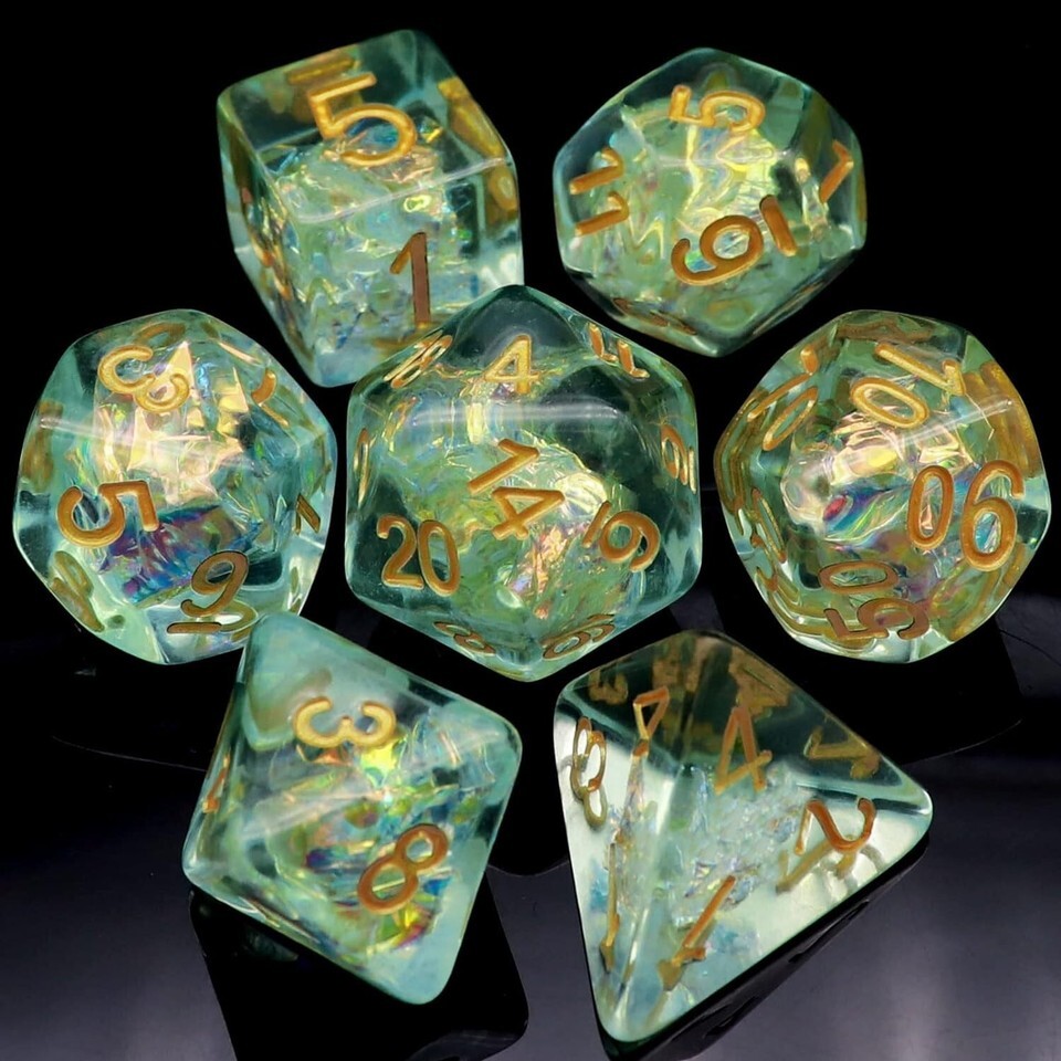 This enchanting Light Ice Green DND Dice Set includes: