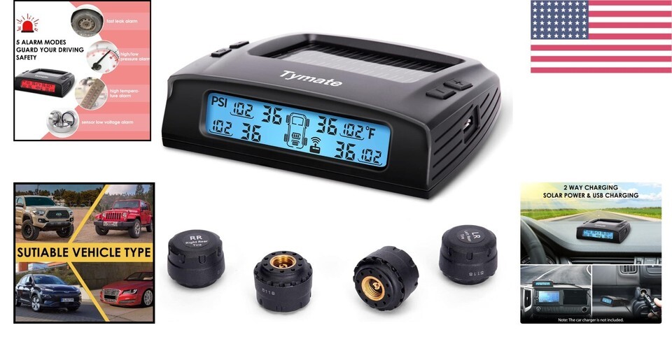 - Eco-Friendly M7-3 TPMS: Solar-Powered Tire Pressure Monitor with 7 Tire Support