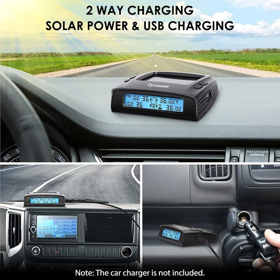 Solar-Powered Tire Pressure Monitor with 7 Tire Support