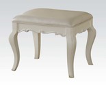 Features: Stool (Armless/Backless) Padded Seat: Pearl White PU Seat Apron w/Scrolled Inlay Detail Cabriole Wooden Leg Designed for comfort and everyday functionality. Set Includes: One (1) Vanity Table