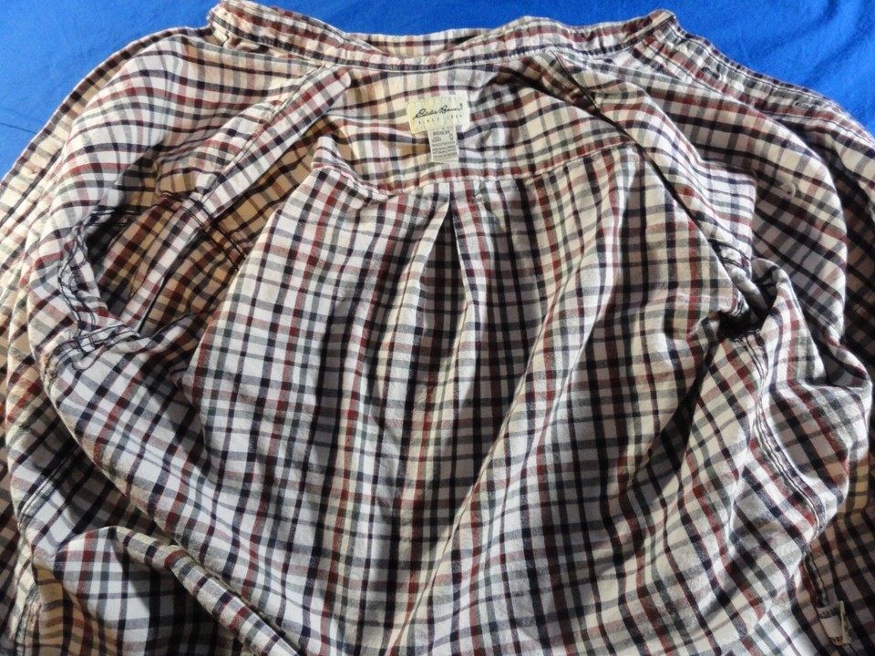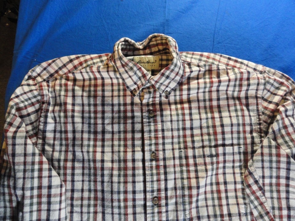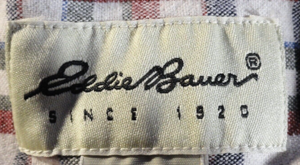 - EDDIE BAUER MEN'S RED WHITE PLAID OUTDOOR LONG SLEEVE BUTTON UP OUTDOOR SHIRT MR