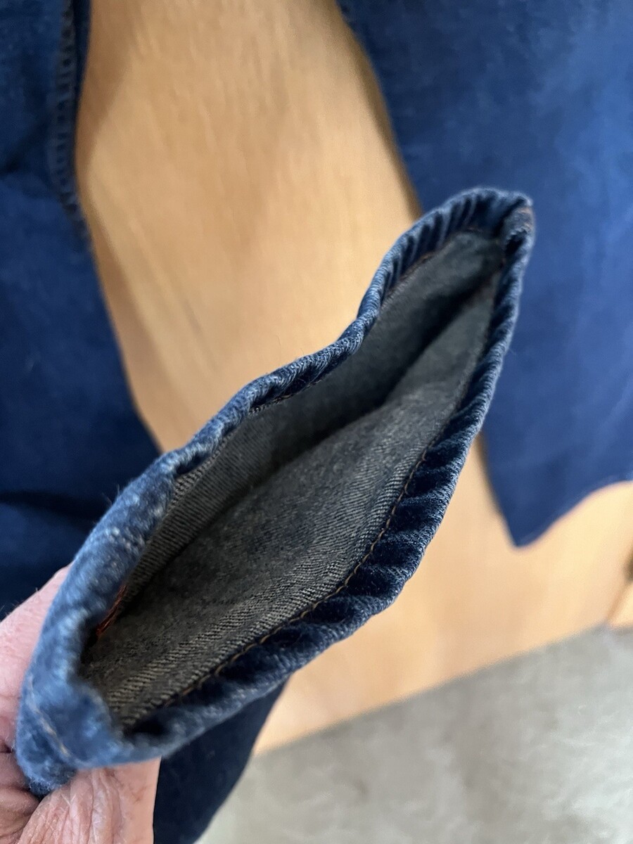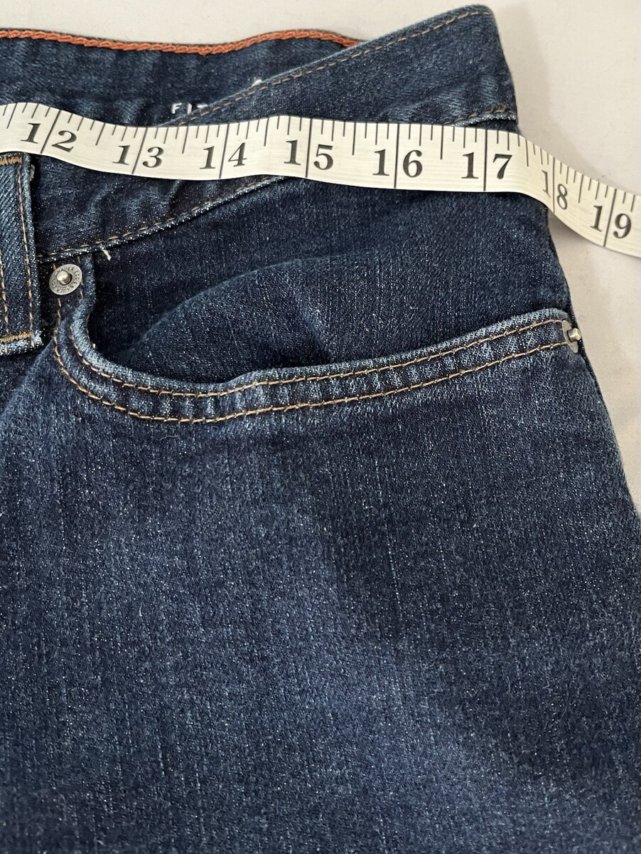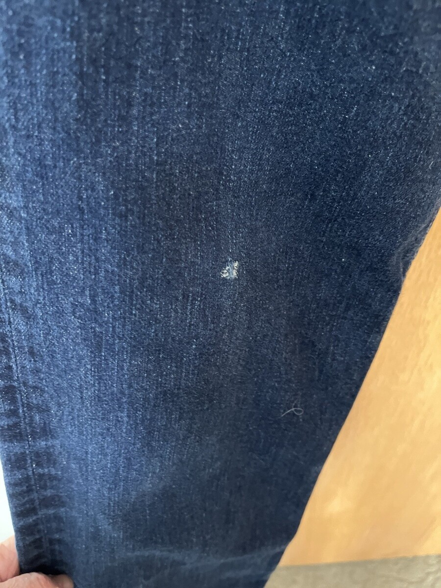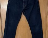 This product is a pair of Eddie Bauer Relaxed Fit Men's Jeans in size 34x34, specially dyed in a dark wash. The jeans are solid in color, made of denim fabric, and feature a zip and button closure. With a relaxed fit and ankle length, these jeans are ideal for all seasons and come in a classic blue hue. Made in Mexico, they are a versatile wardrobe staple for the modern man looking for comfort and style. Small imperfection on right leg front (as shown, not all the way through) other than that, excellent shape.