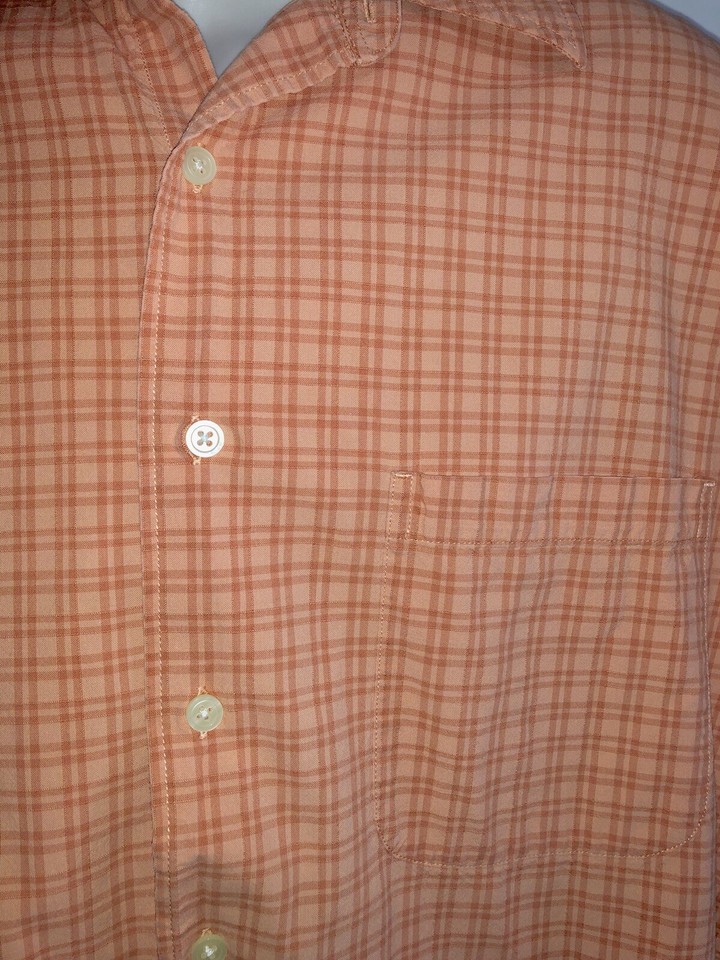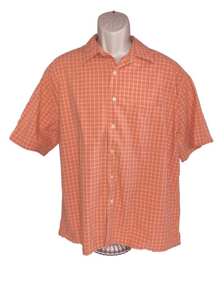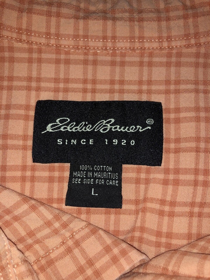 - Eddie Bauer Shirt Men’s L Peach Plaid Short Sleeve Pocket Button Down Outdoors