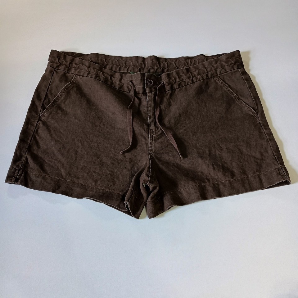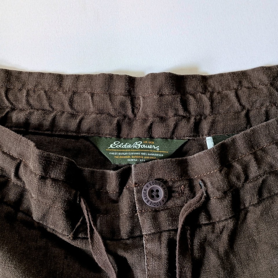 - Eddie Bauer Shorts Womens 14 Brown 100% Linen Elastic Waist Drawstring Casual