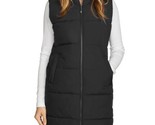 - Eddie Bauer Womens Puffer Vest Black Long Hood Pockets Sleeveless Lightweight