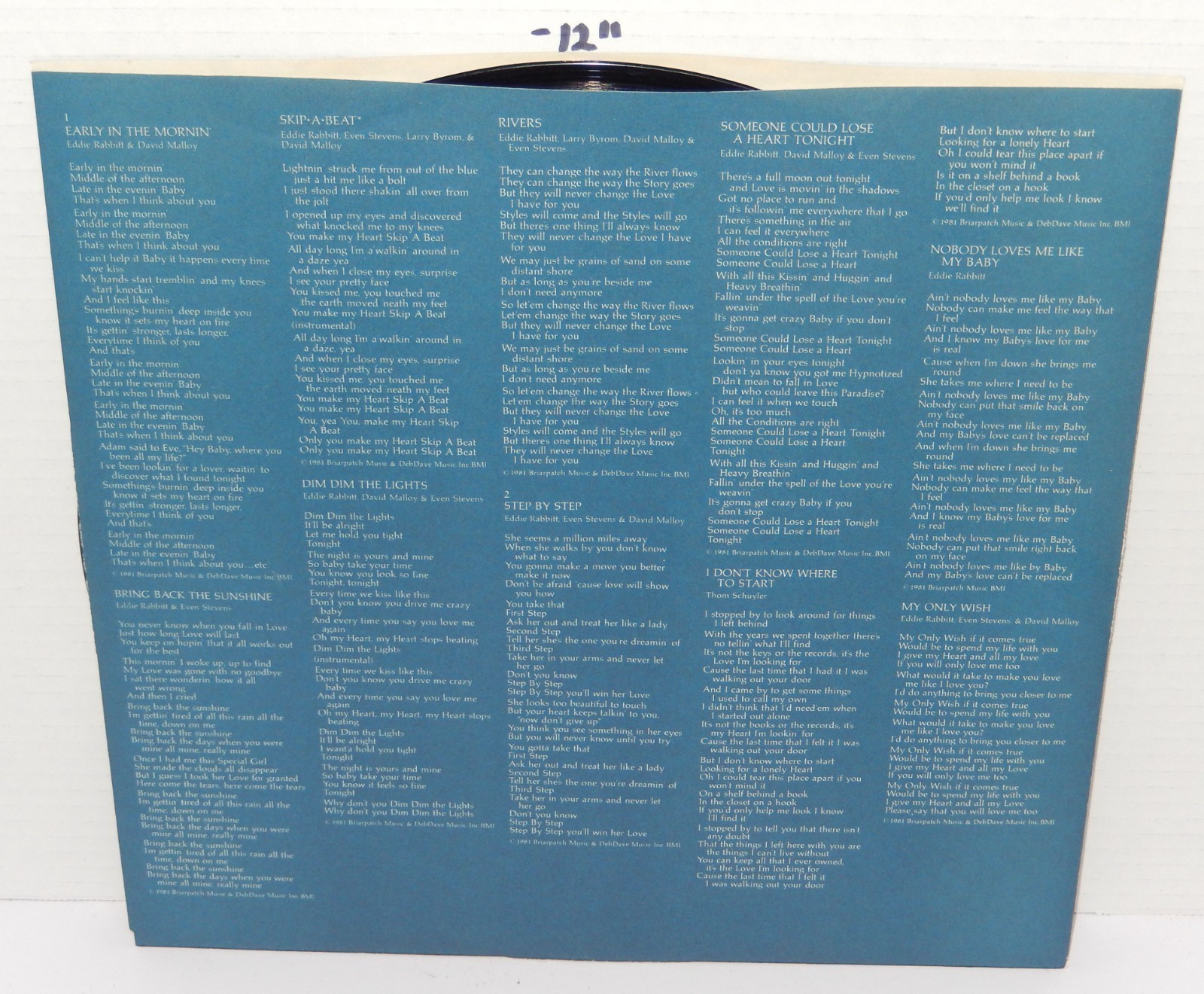 This album features two of his major crossover hits, the title track "Step by Step" and "Someone Could Lose a Heart Tonight". This copy includes the original custom-printed inner sleeve with full album credits.