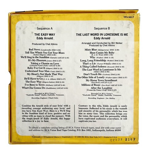 - Eddy Arnold 2 Album Set Stereo Tape Reel 1960s 3 3/4 7" 4 Track RCA TP35017 Elec