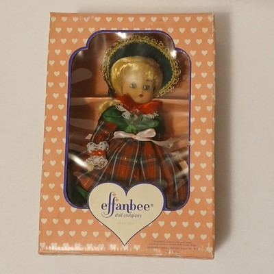 This listing is for a 1995 Annual 1995 Christmas doll from the Effanbee doll company. This doll features a young girl wearing a red and green plaid patterned dress, a green bonnet and shawl and a red bow. The doll is like NEW in the original unopened box. The box is clean with minor wear. It was made in 1995 and is recommended for ages 6 and older.