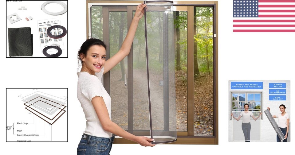 - Effortless Installation Magnetic Window Screen – 60" x 48" Fiberglass Mesh