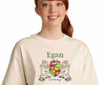 Product description: Egan Irish Coat of Arms Tee Shirt in NaturalEvery Irish family has a story to tell, probably hundreds of stories. Your Irish coat of arms is a visual record of your family's oldest, most significant stories. Here, they're told in bright, permanent artwork on these fine-quality, all-cotton tee shirts. Authentic Irish Family Coat of Arms 100% Cotton Gildan Tee Shirt Over 25 years of Heraldry Research Printed with four color permanent process(no cracking or peeling-guaranteed) Choose from over 1000 available family coat of arms.