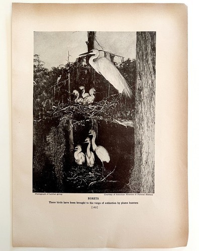 - Egrets In Nest With Young 1936 Bird Print Nature Collectible Ephemera DWU13