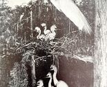 Egrets In Nest With Young 1936 Bird Print Nature Collectible Ephemera DWU13