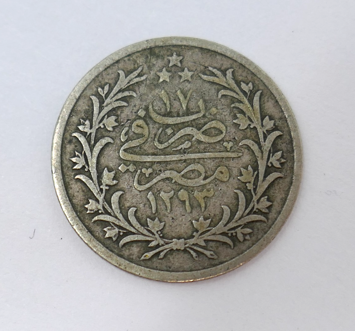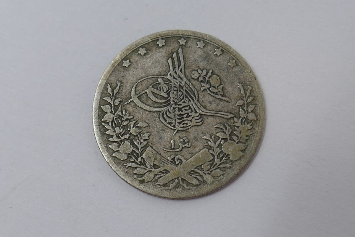 - Egypt 1309 (1892) Abdul Hamid ll 20 Qirsh Silver Coin