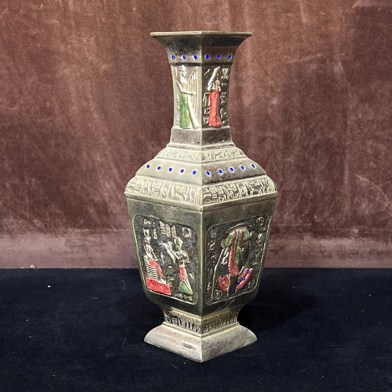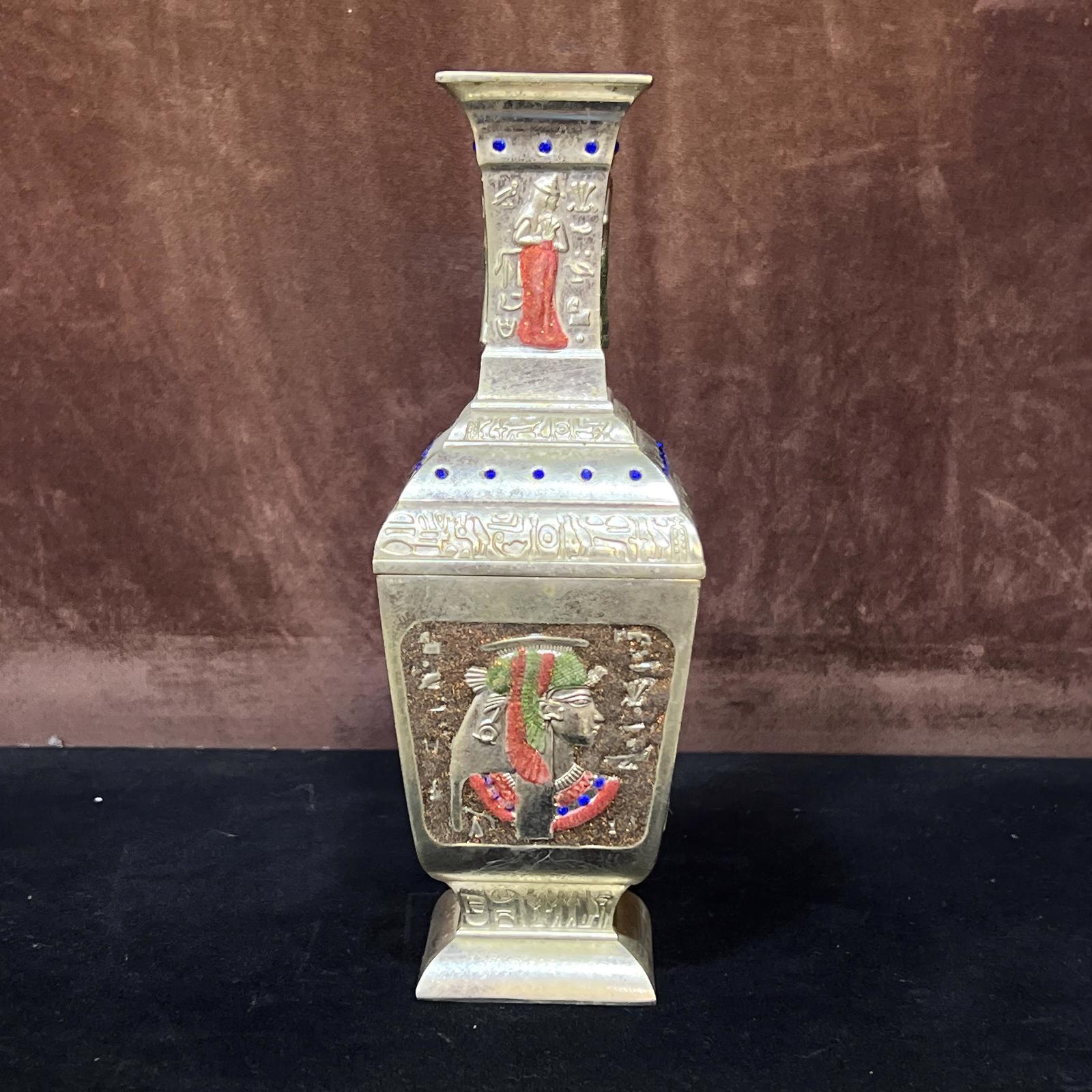 - Egyptian handmade bronze Vase, Ancient Egyptian Incense with King Tut, Queen Nef