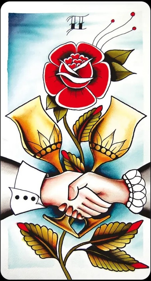 the 78 cards pays homage to tattoo and tarot traditions. Includes