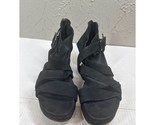 - Eileen Fisher Black Boost Platform Wedge Strappy Sandals Suede Chunky Size 9