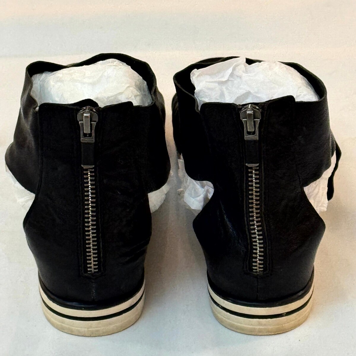 - Eileen Fisher Black Leather Gladiator Sandal Sneakers Zip Back Women's 11