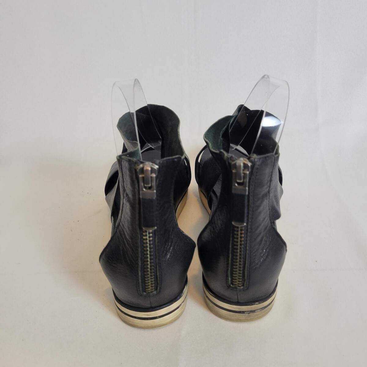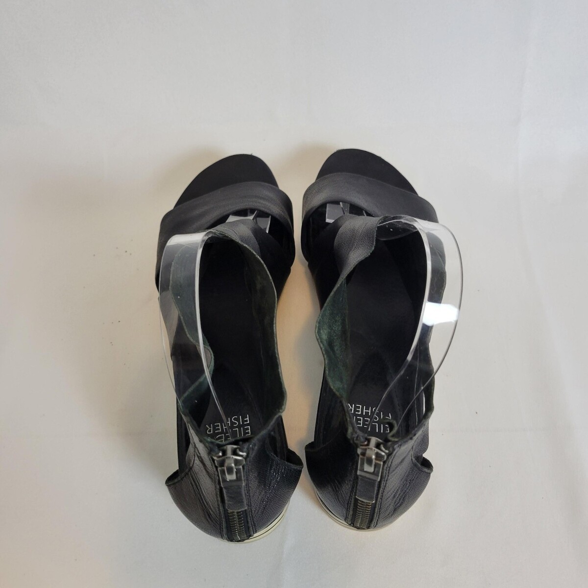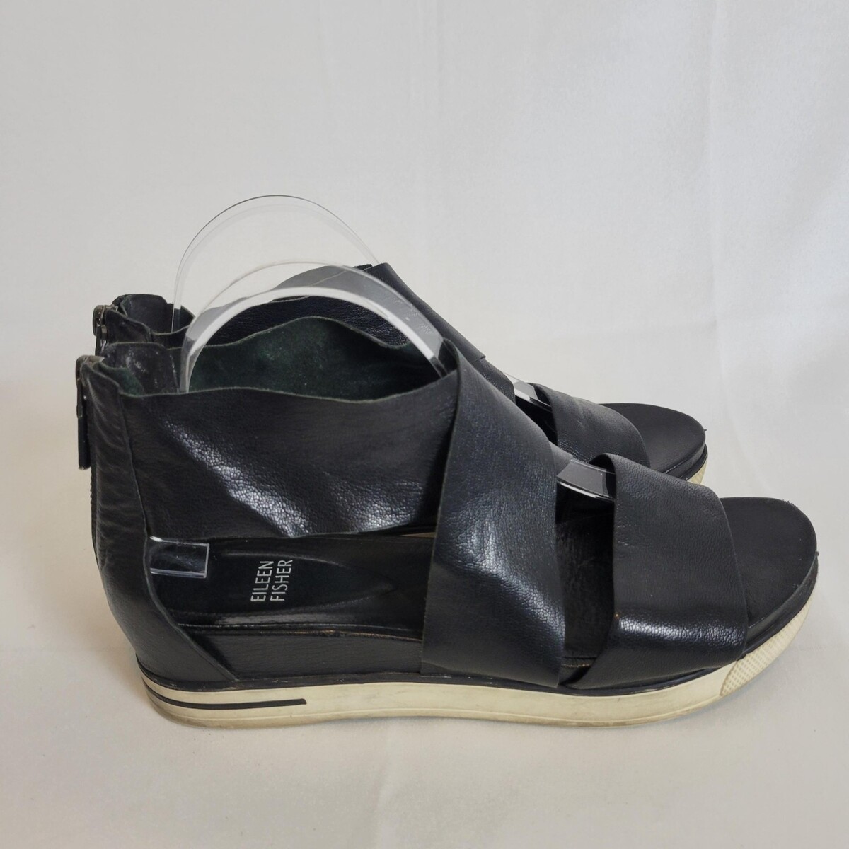 - Eileen Fisher Sport Platform Sandal Black Tumbled Leather Women's Size 9