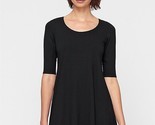 - Eileen Fisher Sz L Black Stretch Scoop Neck Jersey Tunic Midi Dress