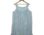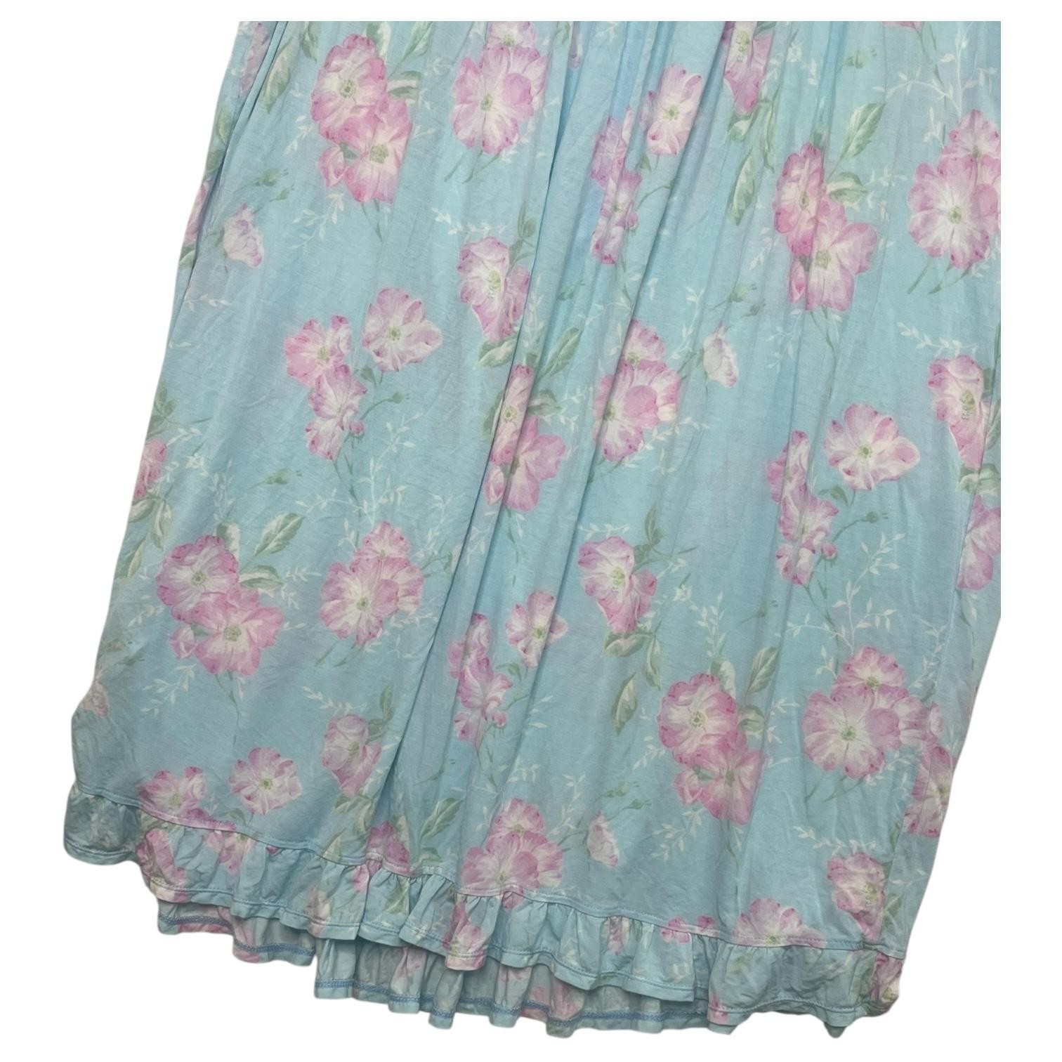 Eileen West Nightgown Womens Large Blue Pink Floral Chemise Lace Trim Ruffle Hem