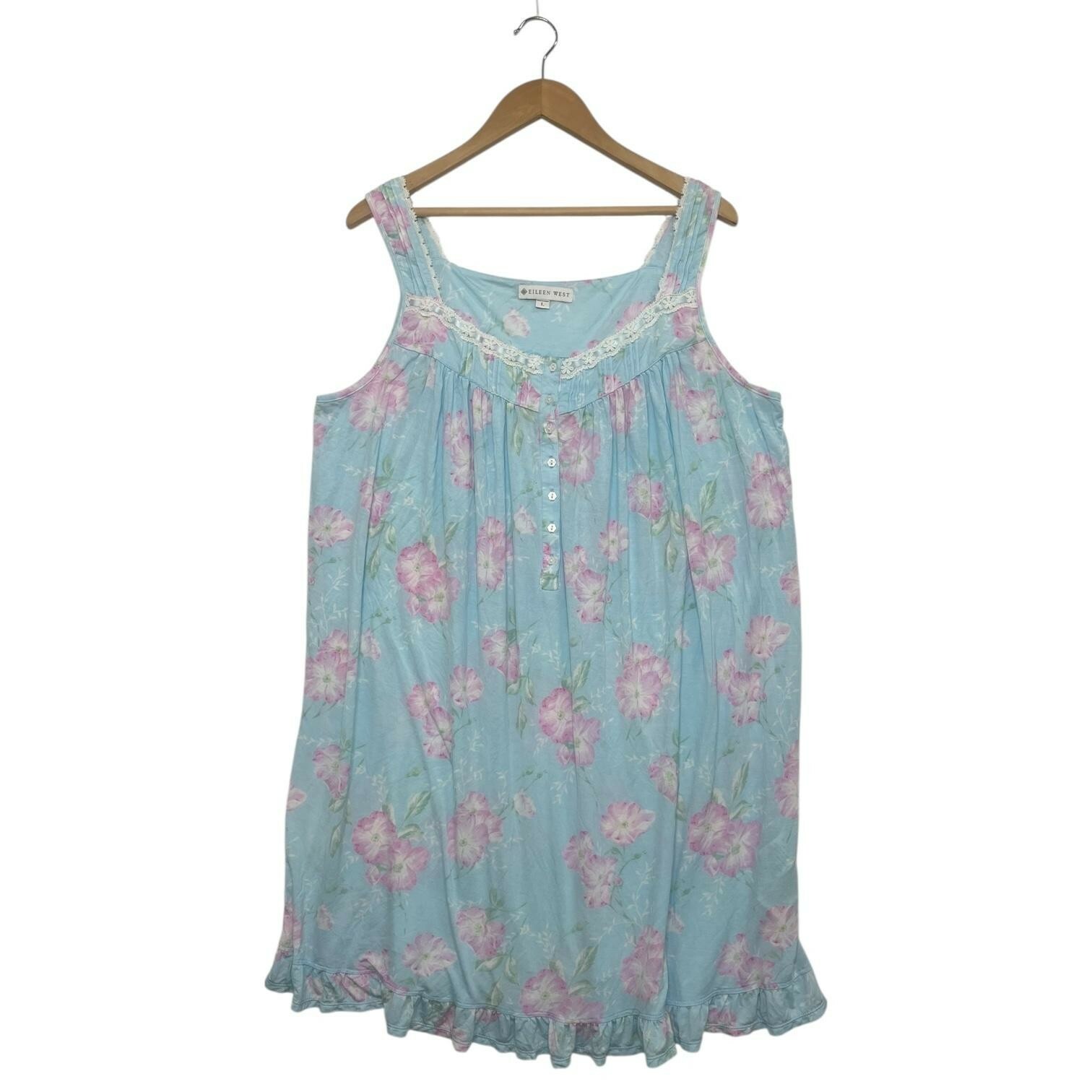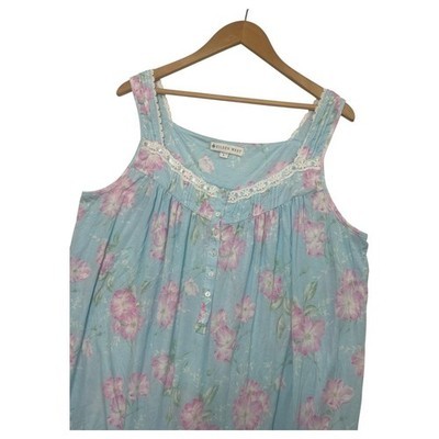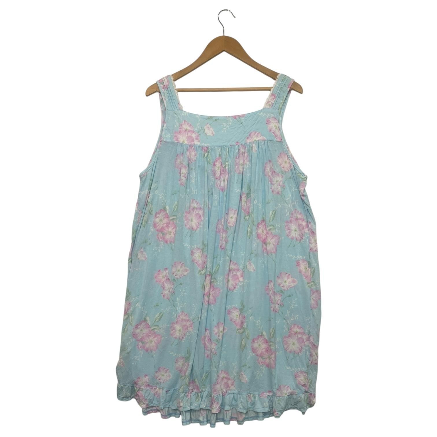 - Eileen West Nightgown Womens Large Blue Pink Floral Chemise Lace Trim Ruffle Hem