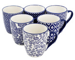 - Elama Declan 6 Piece 12 Ounce Assorted Design Stoneware Mug Set in Blue White