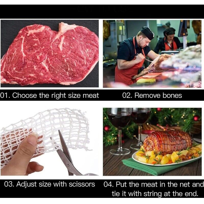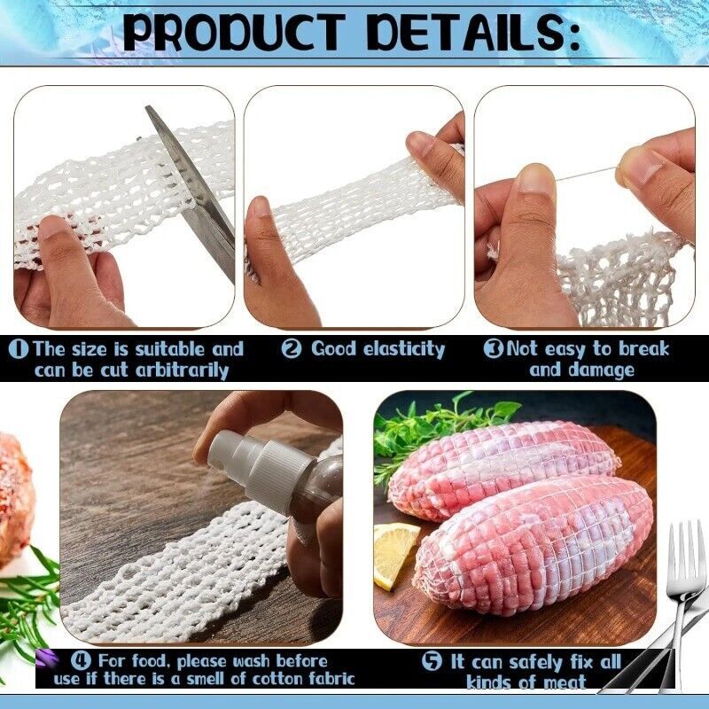 This elastic mesh can be used on all types of meat and cuts, including sausages, pork loin, roast beef and more.