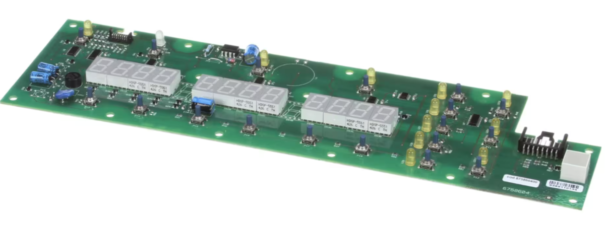 Electrolux Professional 675860400, 6369110134 User Interface Board ? a genuine OEM control board designed to manage and display user commands for professional Electrolux appliances. This user interface board ensures precise control, smooth operation, and responsive feedback, allowing operators to easily adjust and monitor cooking or processing parameters. Built for reliability and long-term use in demanding commercial environments.