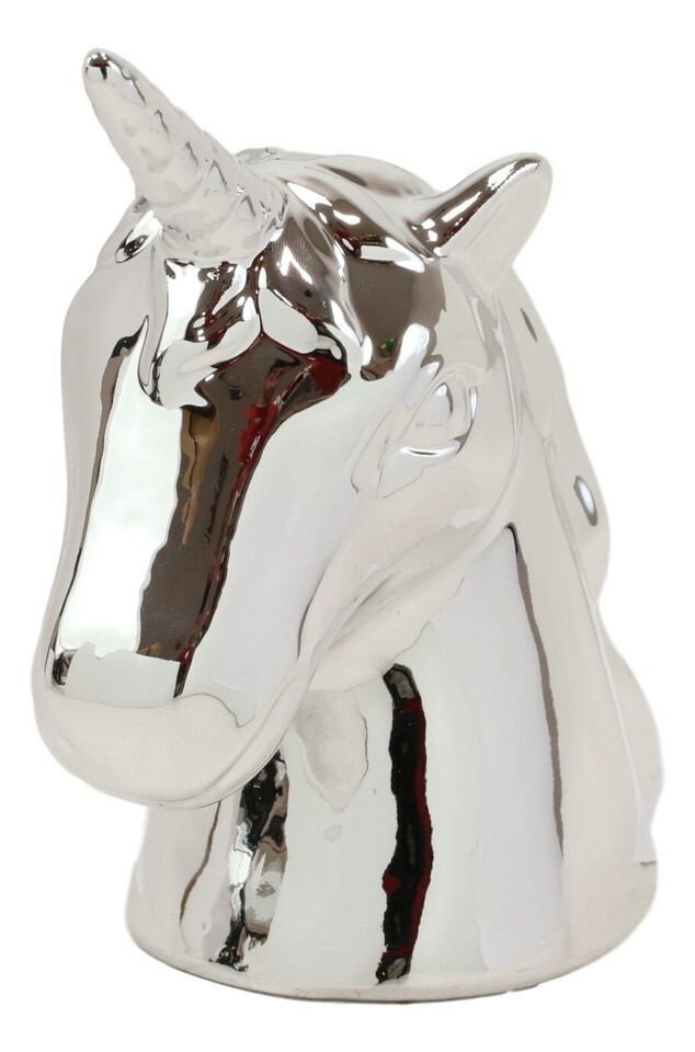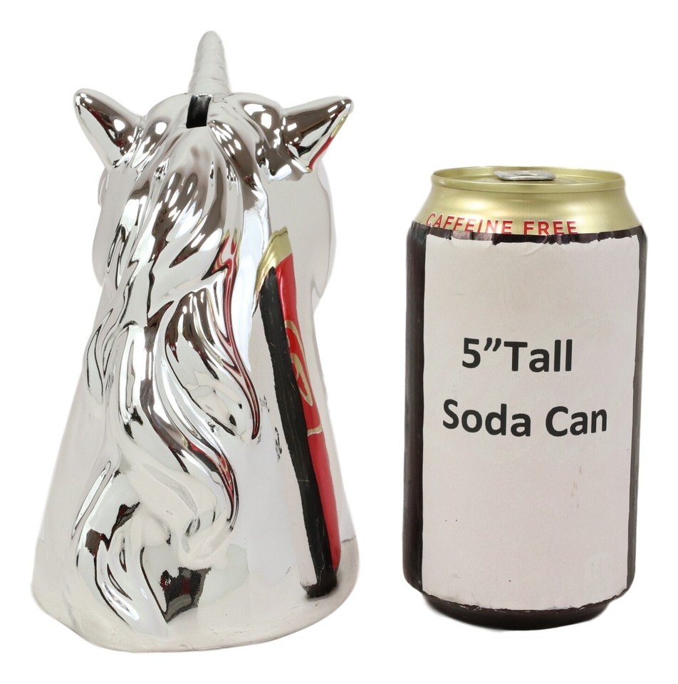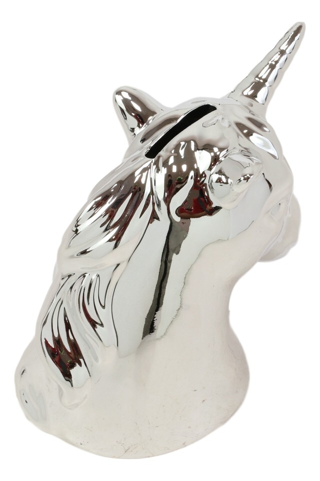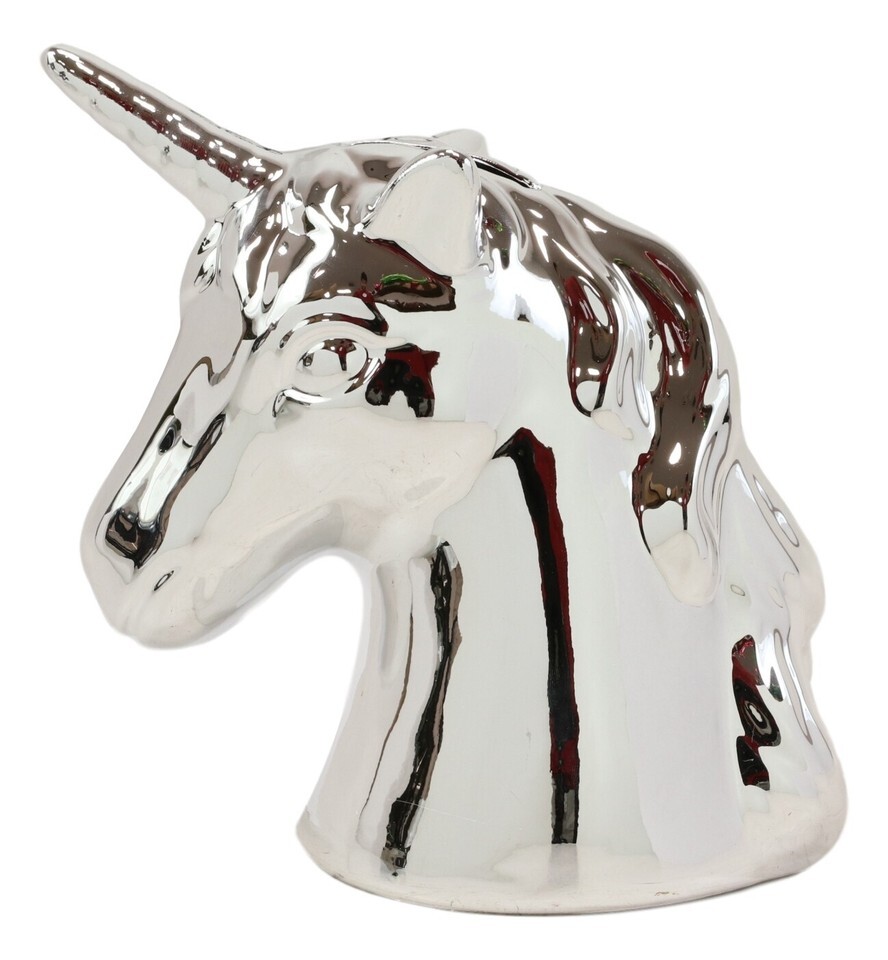 - Electroplated Silver Sacred Unicorn Head Money Coin Bank Figurine Kids Adults