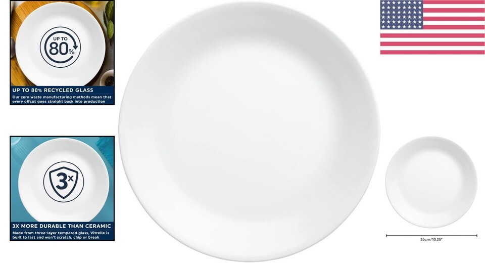 Elegant 10.25" Vitrelle Glass Dinner Plates - 4-Pc Dishwasher Safe Set ? ? ? ? ? ? ? ? ? ? ? ? ? ? ? ? ? ? ? ? ? ? Elegant 10.25" Vitrelle Glass Dinner Plates - 4-Pc Dishwasher Safe Set Indulge in elegance and durability with our exquisite 10.25" dinner plate set. Perfectly designed for savoring your culinary creations, this 4-pack set features high-quality Vitrelle glass that harmonizes beautifully with your dining aesthetics. Key Features: Generous Size: Each plate measures 10.25", ideal for serving steak, pasta, and other mouthwatering dishes. Durable Vitrelle Glass: Our unique, triple-layer glass technology provides exceptional strength, ensuring these plates are stain, chip, and crack resistant. Eco-Friendly Composition: Crafted from up to 80% pre-consumer recycled glass, making them a sustainable choice for your home. Space Saving Design: Sleek, lightweight, and ultra-stackable, these plates are perfect for compact storage. Versatile Use: Safe for dishwasher, microwave, freezer, and pre-heated oven (up to 350F). Made in USA: Crafted with pride in Corning, NY since 1970, ensuring top-notch quality. Design Inspiration: Immerse yourself in the serene beauty of seaside living. The watery blue hues, organic lines, and delicate floral patterns come together to create a timeless dinnerware aesthetic that effortlessly elevates your meals and gatherings. Each piece breathes an air of elegance and coastal charm that is both inspiring and inviting. Why Choose Our Elegant Dinner Plates? Why settle for the ordinary when you can serve your meals with style and sophistication? Our Elegant Vitrelle Glass Dinner Plates are not just functional?they are a statement of grace and quality in your dining experience. Enjoy peace of mind with durable, dishwasher-safe dinnerware that complements your aesthetic while standing the test of time. Elevate your dining experience and inspire memories?order your Elegant 10.25" Vitrelle Glass Dinner Plates set today! Shipping Free Fast Shipping - We offer free shipping to most of the USA with a normal delivery time of 3-7 days. However, due to the current situation, additional delivery time (up to 3 weeks) may be required for some items. Alternative Carriers - We may use alternative carriers (e.g. USPS, FedEx, UPS, etc.) to ensure your package arrives safely and on time. Due to the use of multiple carriers, we are unable to provide a tracking number automatically. Handling Time - Orders are processed and shipped within 1-2 business days of receiving cleared payment. Shipping Restrictions - Shipping to Alaska, Hawaii, Puerto Rico, Guam, and other US territories may incur shipping charges or delivery restrictions. Please contact us before ordering, or your order can be refunded/cancelled. State Restrictions - There may be restrictions based on your state of purchase. For example, certain items may not be shipped to California due to state regulations. Contact for Tracking Updates - If you require tracking updates or have any concerns about the delivery of your order, please feel free to contact us, and we will be happy to assist you. Return 30-Day Hassle-Free Returns - We want you to be completely satisfied with your purchase. If you are not, you can return the item within 30 days of receiving it for a full refund or exchange. Easy Return Process - To start a return, simply contact us and we will provide you with a prepaid return shipping label and detailed instructions. Restocking Fee - There are no restocking fees for returns. However, the buyer is responsible for return shipping costs if the return is not due to a seller's error. Refund Processing Time - Refunds will be processed within 5 business days of receiving the returned item in its original condition. Payment We accept all major credit cards, PayPal, and Apple Pay for your convenience. Your payment information is secure and encrypted to ensure a safe and seamless transaction. Please complete your payment within 3 days of purchase to avoid any delays in shipping. Feedback Your feedback is extremely important to us. We strive to provide the best products and customer service possible. If you are satisfied with your purchase, please take a moment to leave us a positive review. If you have any concerns or issues with your order, please contact us before leaving negative feedback. We are committed to resolving any problems and ensuring your satisfaction. Contact Us If you have any questions or concerns, please feel free to reach out to our customer support team. You can contact us through the messaging system. We are available Monday to Friday, 9:00 am to 5:00 pm EST, and we will do our best to respond to your inquiry within 24 hours. Buy it now and enjoy a pleasant shopping experience! UPC: Not Set Item Length: Corelle Dinner Plates Item Width: Corelle Dinner Plates Material: Glass Set Includes: Dinner Plate,Plate Occasion: All Occasions,Christmas Theme: Not Set Features: Dishwasher Safe,Chip Resistant,Crack Resistant,Eco-Friendly,Durable Department: Unisex Kids,Adult Brand: Unbranded Type: Dinner Plate Color: Winter Frost White Country/Region of Manufacture: Not Set Pattern: Solid Origin: America Product Line: Not Set Production Technique: Not Set Production Style: Elegant Glass Time Period Manufactured: Not Set MPN: Not Set Shape: Round Style: Traditional Year Manufactured: Not Set Backstamp: Printed Number of Items in Set: Four-Piece Finish: Glossy Era: 21st Century (2000-now) Manufacturer Warranty: Not Set Item Height: Not Set Item Weight: 1.61 kg Plate Diameter: 10.25 in Care Instructions: Dishwasher Safe Vintage: Not Set Handmade: Not Set Original/Licensed Reproduction: Not Set Antique: Not Set