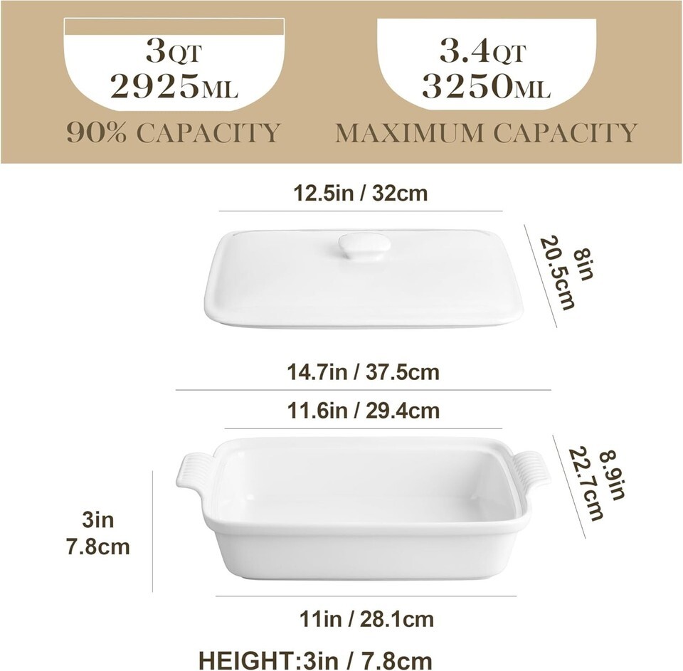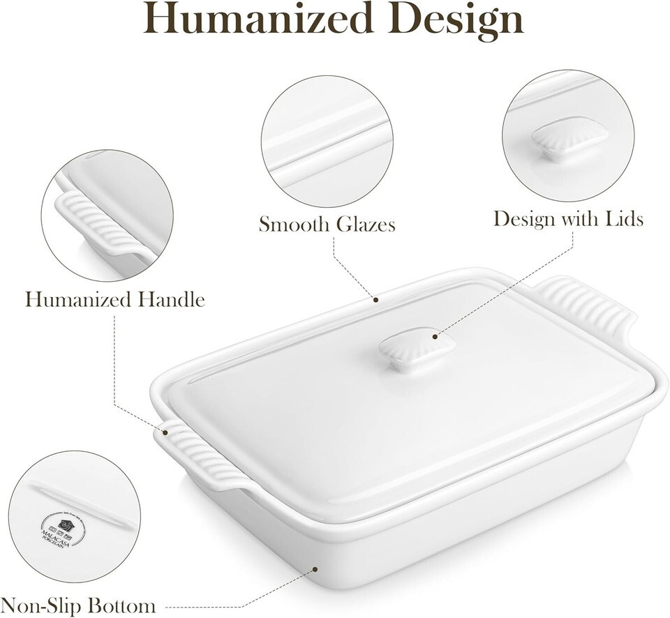 - Elegant 13 x 9 Porcelain Casserole Dish with Non-stick Lid for Everyday Use