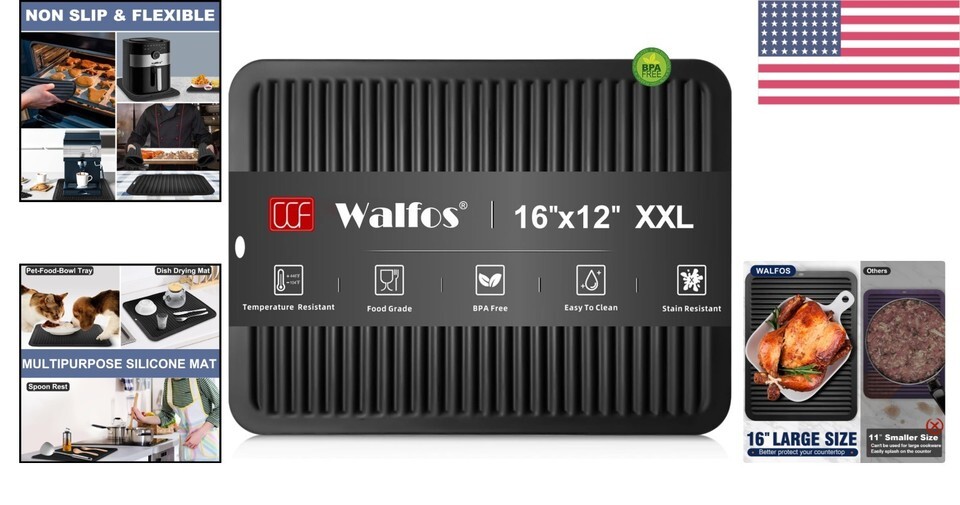 Multifunctional Design: Flexible and non-slip, this silicone trivet can serve as a pot holder, dish drying mat, spoon rest, pet bowl tray, and more. Ideal for use with air fryers, coffee makers, and other large cookware.