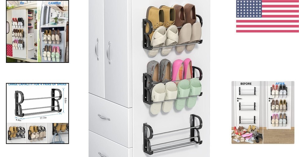 Primary image for Elegant 3-Pack Wall Shoe Rack - No Drilling, Space-Saving for RVs and Campers