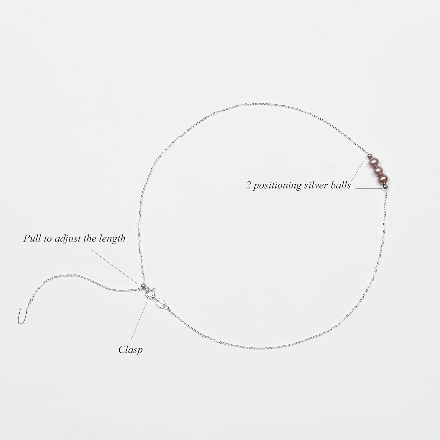 - Elegant 3 Pearl Aquamarine Choker Necklace - Adjustable Sterling Silver Jewelry